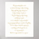Cartaz personalizado que diz "Nós lembramos daqueles que não puderam estar aqui conosco hoje. Ao longo dos anos, seu Amor ajudou a moldar nossas vidas. Sentimos que eles estão aqui hoje, nos observando, enquanto iniciamos nossa nova e maravilhosa jornada e começamos nossas vidas juntos. Nós os amamos com todo o nosso coração, e eles sempre viverão em nossas memórias. Até que sejamos unidos mais uma vez… " em Dourado.