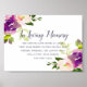 Projetado para combinar com nossa coleção de casamento Vibrant Bloom, este elegante sinal botânico é perfeito para ser colocado em uma mesa de memória ou exibição em homenagem aos entes queridos que faleceram. Personalize o cabeçalho e o texto do corpo (mostrado com "Em Memória Amorosa" e um breve poema) emoldurado por flores e folhagens em aquarela exuberante.