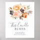 Este sinal de memorial esta vela queima terra rústica é perfeito para um casamento de outono. O design elegante em tons terrosos apresenta flores rústicas em aquarela em tons de terracota, cobre, laranja queimado, pêssego, rosa desbotado e branco creme com estilo boho vintage.