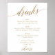 Poster Sinal de Menu de Bebidas com Caligrafia em Dourado