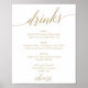 Este sinal de menu de bebidas de caligrafia dourada chata elegante é perfeito para um casamento simples. O design neutro apresenta um pôster minimalista decorado com tipografia amarela dourada romântica e caprichosa. Personalize o sinal com as bebidas disponíveis no seu casamento.