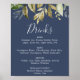 Poster Sinal de Menu de Bebidas de Casamento Azul Marinho