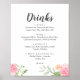 Poster Sinal de Menu de Bebidas de Noiva Peônia de Primav