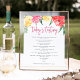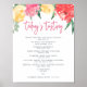 Elegante sinal de menu de degustação de vinhos com flores decorativas em aquarela vibrante em rosa, vermelho e amarelo. Projetado para combinar com nossa coleção de convites Jardim Rosé.