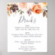 Poster Sinal de Menu Rustic Earth Florals Wedding Drinks