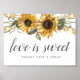 Poster Sinal de Mesa de deserto de Casamento de Girassóis