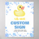 Nosso sinal personalizado de aniversário de pato de borracha é uma forma excelente de personalizar e adicionar esse toque especial às decorações de sua festa. O design é totalmente personalizável, portanto você pode adicionar qualquer texto, nome, idade ou outras informações relevantes de sua escolha. Este produto é perfeito para uma festa temática de aquarelas e é uma forma excelente de fazer com que a celebração se sinta mais especial e única.