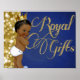 Celebre seu pequeno rei em estilo com este sinal de Mesa príncipe real do Príncipe Africano. Possui um rico fundo azul real, sotaque em ouro, e um adorável bebê americano vestindo uma coroa dourada, fralda branca e chinelos azuis. Perfeito para um Chá de fraldas de Tema Real, primeiro aniversario de Pequeno Príncipe ou Decoração de Chá de fraldas de Menino Negro. ©Miss Sassy Party Design