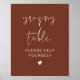 Esta placa de mesa de pastoreio apresenta uma fonte escura escrita à mão e uma design moderna minimalista com uma combinação de terracota e crosta. Use este poster para sua recepção de casamento, chá de panela, festa de aposentadoria, etc. Edite o texto *maioria* para atender às suas necessidades.