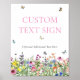 Boêmio, lindo e cheio de elegância, este sinal de chuveiro de noiva para mesa apresenta um campo de cores vivas com delicadas flores selvagens, borboletas, abelhas e joaninhas.