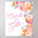 Bem-vindos convidados com o charme do nosso Chá de panela 'Cartões e Ofertas', mostrando um design encantador que captura a essência de um jardim florescente. Flores silvestres de cor aquosa pintadas à mão e flores vibrantes de verão adoram a placa, criando um ambiente caprichoso e natural. A elegante fonte do pincel de script guia os hóspedes com sofisticação, enquanto as vibrantes sombras de cor-de-rosa, laranja brilhante e verde-luxuoso evocam a beleza de uma paisagem rural. Que este sinal seja uma surpresa encantadora, dando o tom para uma celebração alegre cheia de amor e gratidão.