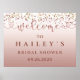 Lindo sinal de boas-vindas de chá de noiva dourado falso, rosa dourado e champanhe rosa