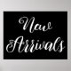 Poster de novas chegadas em um design branco e preto elegante - sinal perfeito para a loja de varejo e os proprietários de negócios anunciarem seus novos itens de chegada.