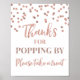 Sinal de obrigado por passar na barraca de pipoca para chá de bebê, chá de noiva, festa de aniversário ou casamento em um padrão de confete rosa dourado.