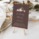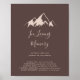 Este sinal de país de montanha claro em memória amorosa é perfeito para um casamento rústico ou chá de noiva. O design apresenta uma montanha bege idílica em aquarela.
