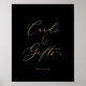 Este delicado símbolo de ouro, cartas negras e presentes é perfeito para um casamento ou chá de panela moderno. A design romântica minimalista apresenta uma magnífica e elegante tipografia amarela ouro champanhe num fundo preto com um aspecto simples e limpo. A linha de texto na parte inferior da placa pode ser personalizada com a data, os nomes da noiva e do noivo, ou uma mensagem curta como "Obrigado". Este sinal pode ser usado para um casamento ou qualquer evento ou festa.