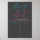 Aqui está uma poster divertida para ter na sua festa de revelação de gênero! O texto do script de tipografia escrito à mão diz "Boy or Girl" no topo pedindo aos hóspedes que votem no que eles acham que será o gênero do bebê. O fundo é uma cor escura de cinza de carvão. Convidados podem votar no time boy ou na equipe. Uma atividade divertida para fazer na sua festa.