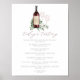 Um cartaz encantador do cardápio do vinho botânico mostra suas seleções de vinho tocado por uma garrafa de vinho tinto arrojado com as iniciais do casal, e dois copos de vinho em um leito de folhas e folhagem de cor aquática verde. Projetado para corresponder à nossa coleção de convites Cheers to Love.