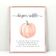 Belo sinal de poster de fralda para o seu chá de fraldas de outono, que apresenta "rifa de fralda" em um roteiro de cinza com baloiços e uma cor d'água laranja da abóbora. Personalize facilmente as instruções de fralda na tipografia simples das cinzas.