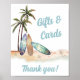 Um belo símbolo de queda de presente de chá de fraldas com tema de surfe, com uma ilustração aquosa da cena da praia tropical com palmeiras, praias arenosas, letais vibrantes e marrom e "Gifts & Cards" e "Obrigado!" em um divertido roteiro azul.