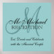 Sinal de Recepção de casamento Azul Personalizado. Por Elke Clarke ©2009. Mais designs disponíveis em WhiteWhimsicalWeddings.com e WhiteWhimsicalWeddings.blogspot.com Tudo é perfeito e planejado à perfeição e então você vê que alguém escreveu manualmente um sinal para levar pessoas para sua sala de recepção. Por que não usar este poster elegante? Você pode adicionar suas próprias informações de recepção de casamento a este design para garantir que seus convidados tenham todas as informações necessárias.