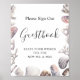 Cartaz de Sinal de Registro de Convidados de Casamento de Praia com Conchas em Aquarela
