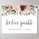 Projetado para combinar com a nossa coleção de casamento Rustic Bloom, este elegante cartaz floral de aquarela convida convidados para o casamento para celebrar o feliz casal com um faísca. Personalize com duas linhas de texto personalizado no script de caligrafia e na letra serif tradicional (mostrada com "Let Love Sparkle: sparkler sendoff at [time]").