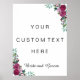 Pôster Sinal de texto personalizado | rosas de aquarela