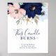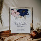 Este sinal de memorial de casamento com vela náutica moderna queima é perfeito para um casamento de cruzeiro ou de praia. O design caprichoso apresenta flores em aquarela rosa e azul-marinho com sotaques de estrelas-do-mar douradas, dando-lhe um clima praiano.