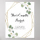 Este sinal de vela queimada com caligrafia geométrica dourada é perfeito para um casamento rústico. O design apresenta ramos e folhas de eucalipto verde botânico desenhados à mão adornando uma moldura geométrica elegante.