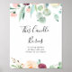 Este sinal de vela queimando eucalipto contemporâneo é perfeito para um casamento simples. O design apresenta peônias encantadoras em roxo aquarela, rosa desbotado, bordô e burgundy com folhas de eucalipto verdes, inspirando beleza artística.