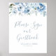 casamento floral azul-boêmio, sinal de livro de convidados. O texto e as cores podem ser editados.
