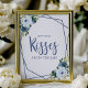 Sinal Floral de Aquarela Azul Empoeirado Quantos Beijos