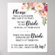Poster Sinal floral rosa para chá de noiva com jogo de pr