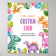 Crie a atmosfera perfeita da festa com este sinal de aniversário de dinossauro. Apresentando adoráveis dinossauros coloridos e sotaques florais, este sinal totalmente editável permite personalizar o texto para se adequar ao seu evento. Seja usado como sinal de boas-vindas, para decoração de mesas, ou como pano de fundo, é uma maneira divertida e personalizável de aprimorar sua festa de aniversário dinotematoide.