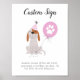 O símbolo festa de aniversário personalizado de criança com tema puppy, com ilustração de um cachorro fofo vestindo um chapéu cor-de-rosa e segurando um balão. Sinais de crio, como placas e sinais, sinais de comida, favores, guia, etc. Perfeito para uma festa de menina.