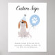 O símbolo festa de aniversário personalizado de criança do tema "Puppy", com ilustração de um cachorro fofo vestindo um chapéu de festa azul e segurando um balão. Sinais de crio, como placas e sinais, sinais de comida, favores, guia, etc. Perfeito para uma festa de menino.