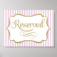 Um elegante sinal reservado rosa e dourado com faixas rosa e branca e uma moldura com brilho dourado. A decoração perfeita para sua festa de casamento, chá de bebê, chá de noiva ou festa de aniversário. Mais sinais de mesa e decorações para festas podem ser encontrados na minha loja.