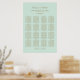 Um gráfico de assentos de casamento fresco e elegante adornado com bordas ornamentais de floreios vintage em um tom de menta fresco. Tipografia delicada e serifa exibe seus nomes e data de casamento acima de um layout de mesa bem organizado. Personalize cada detalhe para se adequar à sua celebração.