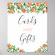 Sinal "Cartões & Presentes" para combinar com a papelaria da minha Churrasqueira de Laranja / Carvão para Churrasqueira no mesmo design. Mostrado aqui para um Baby Shower, mas todo o texto é totalmente personalizável. Você pode adicionar ou excluir campos de texto.