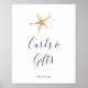 Este sinal de cartões e presentes de estrela-do-mar náutico moderno é perfeito para um cruzeiro ou casamento na praia ou chá de noiva. O design simples apresenta estrelas-do-mar douradas. A linha de texto na parte inferior do sinal pode ser personalizada com a data, os nomes dos noivos ou uma mensagem curta como "Obrigado". Este sinal pode ser usado para um casamento ou qualquer evento ou festa.