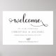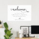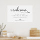 Menos é mais, esta simples placa de casamento irá expressar diretamente sua personalidade e dar aos seus hóspedes informações claras. Faça uma grande primeira impressão com este sinal de boas-vindas preto e branco horizontal minimalista, perfeito para um casamento elegante e clássico. Você pode adicionar a cor de fundo. Basta clicar no link personalizar mais, mostrado na área de personalização de texto à direita, e escolher seu fundo de cor personalizado.