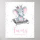 Sinal de lembrancinha de chá de bebê de elefante menina com adorável princesa bebê elefante em um fundo de brilho prateado. Este sinal de mesa para lembrancinhas de chá de bebê de elefante menina pode ser colocado em uma moldura de 8x10 polegadas e colocado na mesa.