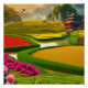 Esta ilustração vibrante captura a essência de um campo asiático exuberante em primavera. Um prédio tradicional ao estilo pagode fica no meio de campos de arroz ouro, cercado por colinas e montanhas verdes. A cena é animada por grandiosas andorinhas enterrando por um céu luminoso, onde um grande sol banha a paisagem em luz quente. No primeiro plano, florescem delicadas flores rosadas de lótus, acrescentando um toque de serenidade à composição dinâmica. A imagem combina, de forma magistral, elementos da arte tradicional asiática com uma abordagem moderna e estilizada, criando uma visão harmoniosa e estimulante que celebra a beleza da natureza e do patrimônio cultural. Este design é melhor para impressões de arte em parede, ilustrações de calendário, cobrir de livros ou como motivo para têxteis e papelaria. Sua qualidade serena, porém enérgica, a torna adequada para espaços destinados a evocar um senso de calma e beleza natural, como retretos de spa, salas de meditação ou restaurantes inspirados na Ásia. A imagem também poderia ser usada em materiais educacionais sobre cultura asiática, agricultura ou ecossistemas.