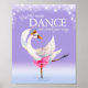 Arte de aquarela fofa cisne dançando impressão de pôster ideal para um novo bebê ou presente de chuvinha de bebê. Arte de aquarela suave em tons de roxo, rosa e azul. Atualmente lê-se Sinta a música dançar e esticar as asas ou você pode personalizar este pôster com suas próprias palavras. © Arte e design únicos e caprichosos de aquarela por Sarah Trett. www.sarahtrett.com para www.mylittleeden.com