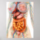 Corpo feminino mostrando sistema digestivo e circulatório.