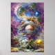 Linda ilustração de um sistema solar de galáxia roxa. Wombo Dream AI e colaboração de artistas.