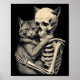 Poster Skeleton Hugging Cat Lover Halloween Tee Engraçado