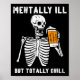 Poster Skeleton Mentally Ill Totally Chill Funny Retro Ha
