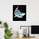 Poster Skeleton Riding Shark Dias de as Bruxas engraçados